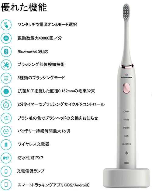 トップ > InfinitusValue > 【送料無料】InfinitusValue スマートトラッキング電動歯ブラシ ホワイト IVHB01W