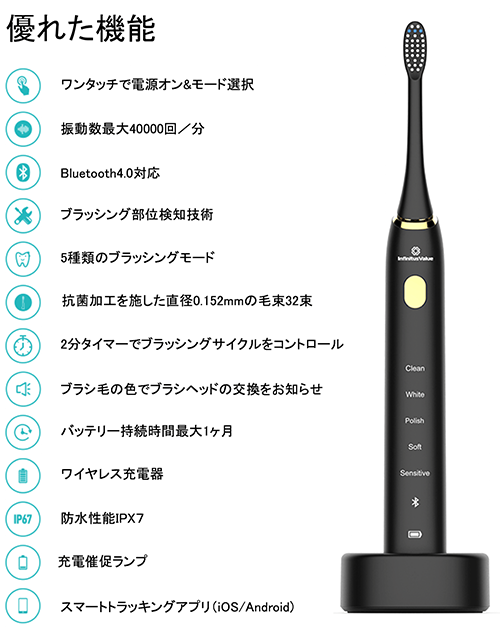 トップ > InfinitusValue > 【送料無料】InfinitusValue スマートトラッキング電動歯ブラシ ブラック IVHB01B