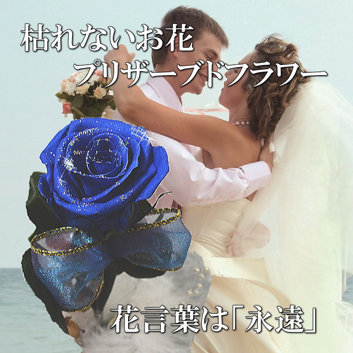 > ブルーのワイン「ブランドブルー」と枯れないお花プリザーブドフラワー「青いバラ」