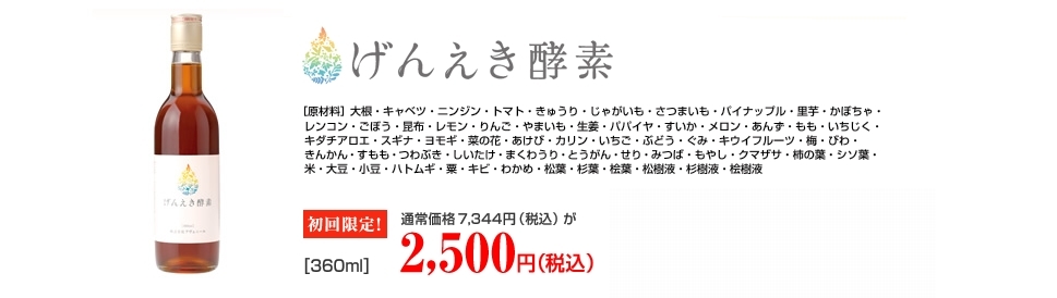 トップ > アヴェニール > 【女子力UP!】【女子会】【初回限定】げんえき酵素(360ml)