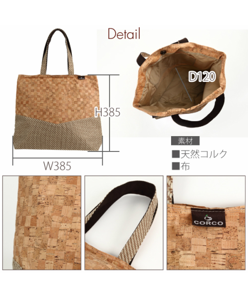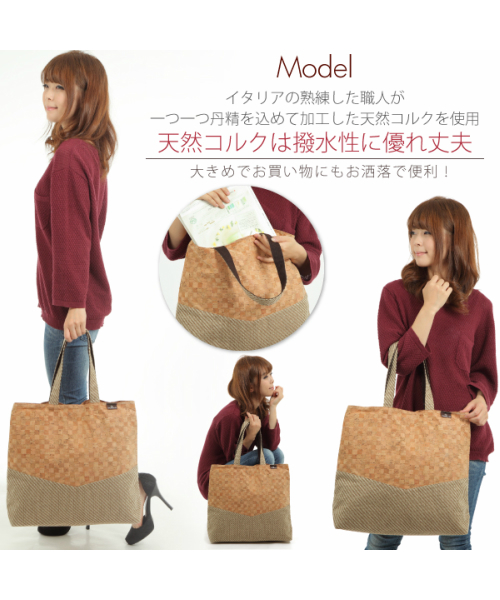 大容量のコルクトートバッグ!小さなお子さんの荷物も沢山入り、便利でおしゃれなバッグ!