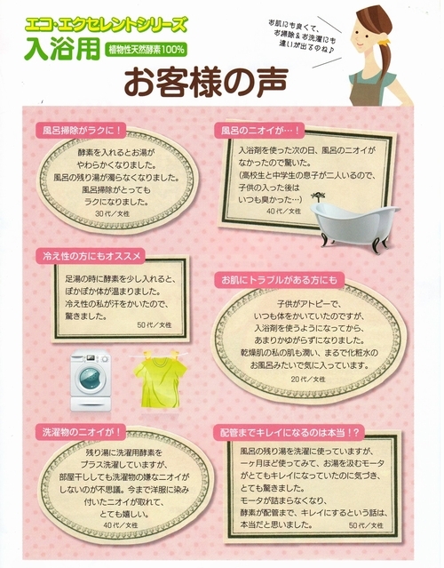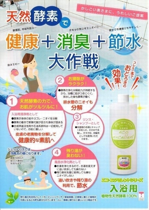 天然酵素洗浄剤なので、浴槽・湯釜などを傷める心配がありません。