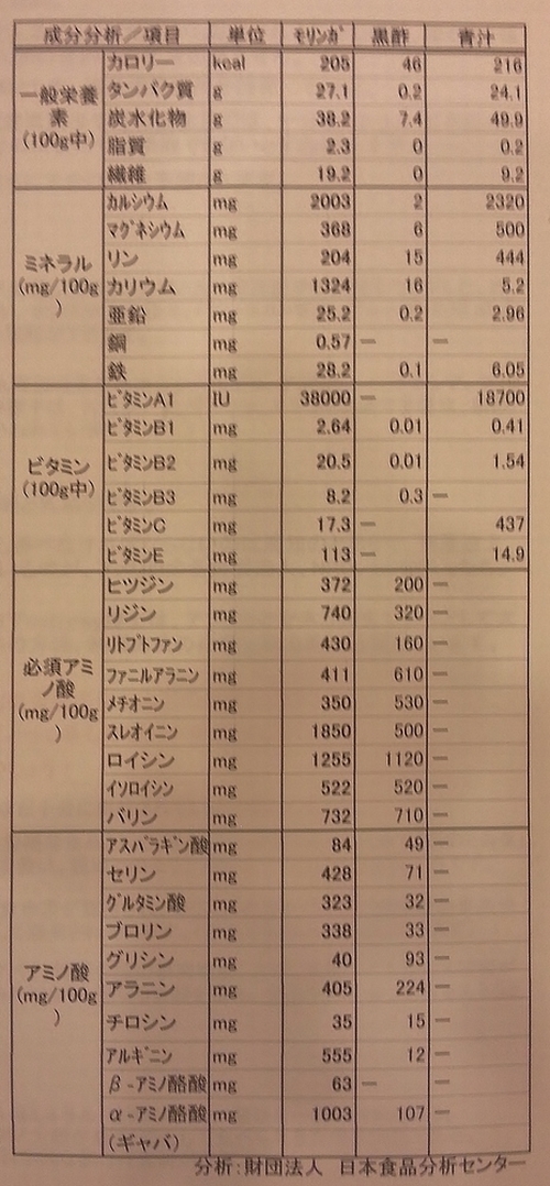 一方、ミネラル・ビタミンに関しては、モリンガが圧倒的。