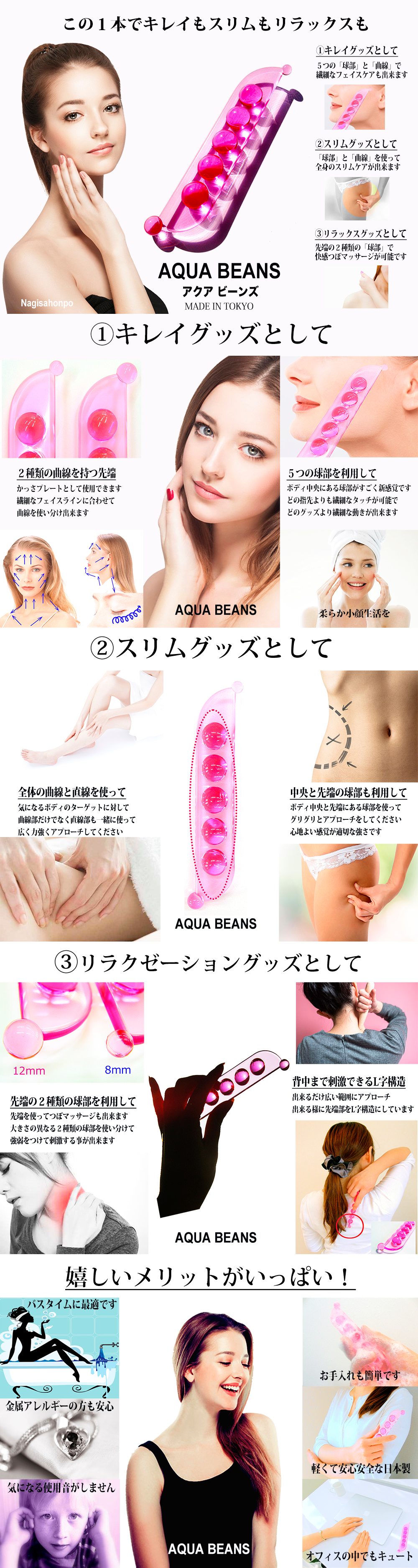 これさえ1本あれば①全身のマッサージグッズとしても②ツボマッサージグッズとしても③かっさプレートとしても、3通りの使い方ができる新発想のボディケアグッズです。